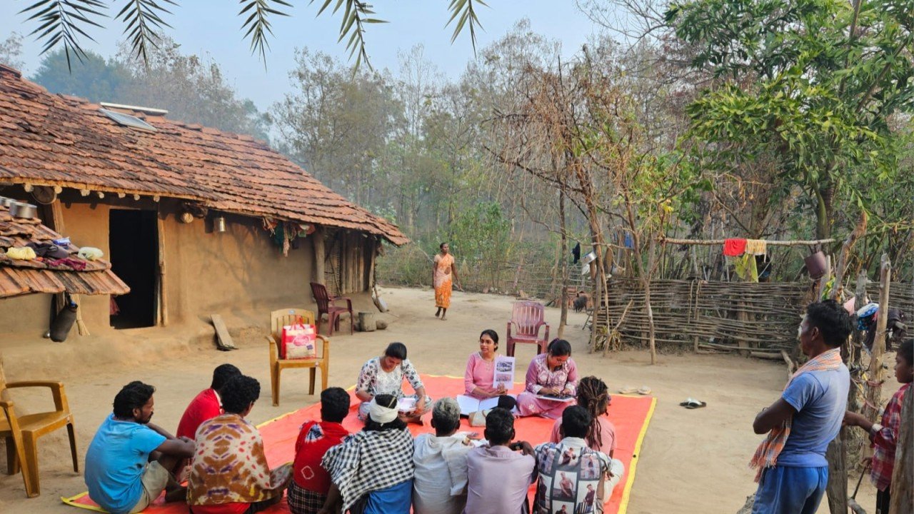 But doing all this was never as simple as the plan. The community’s availability was a shifting tide. We travelled late in the night without electricity, our path lit by a beam of torches, and we held our sessions with the communities under the soft glow of solar lights. Sometimes, we arrived only to find empty courtyards, waiting for hours or even a day until people returned from distant fields. The vehicles could not reach some hamlets, so we walked, sometimes crossing the river streams, carrying our materials and our patience. On many days, discussions took place amidst agricultural work, and some days the rains disrupted our journey. However, through these visits, we realised one thing, the hardships we found unbearable for just a short while are the sad realities of these communities every day. The absence of roads, the darkness without electricity, and the lack of a mobile network are the constant backdrop of their lives.